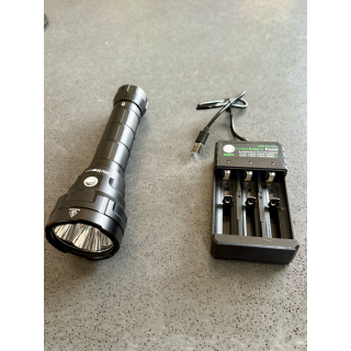 Lampe WURKOS 13000 Lumens avec chargeur et batteries .Câest une lampe compacte trĂšs puissante dotĂ©e dâune super autonomie.
