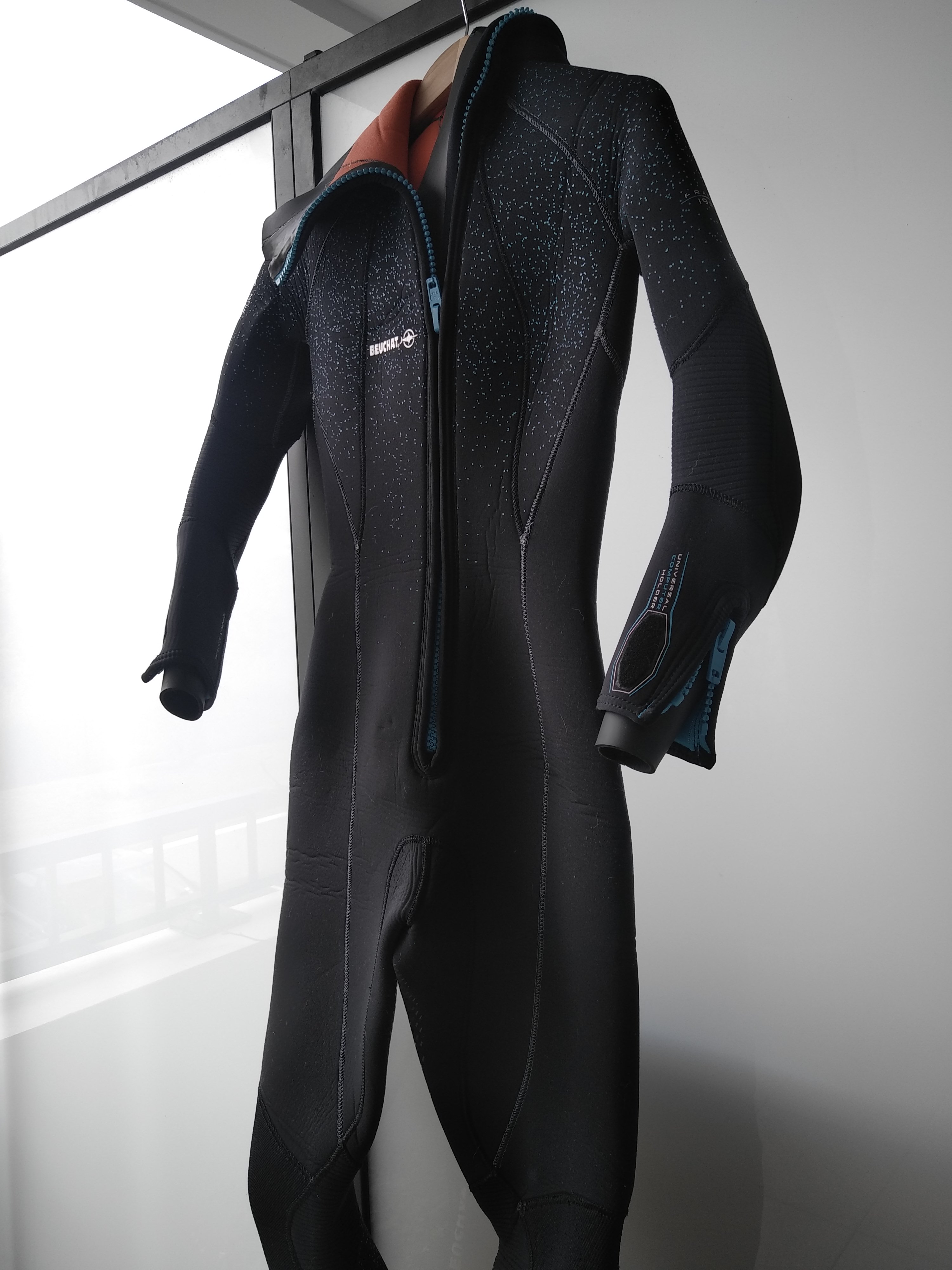 Combinaison de plongée humide Beuchat FOCEA COMFORT Femme 7 mm, fermeture ventrale et cagoule attenante.