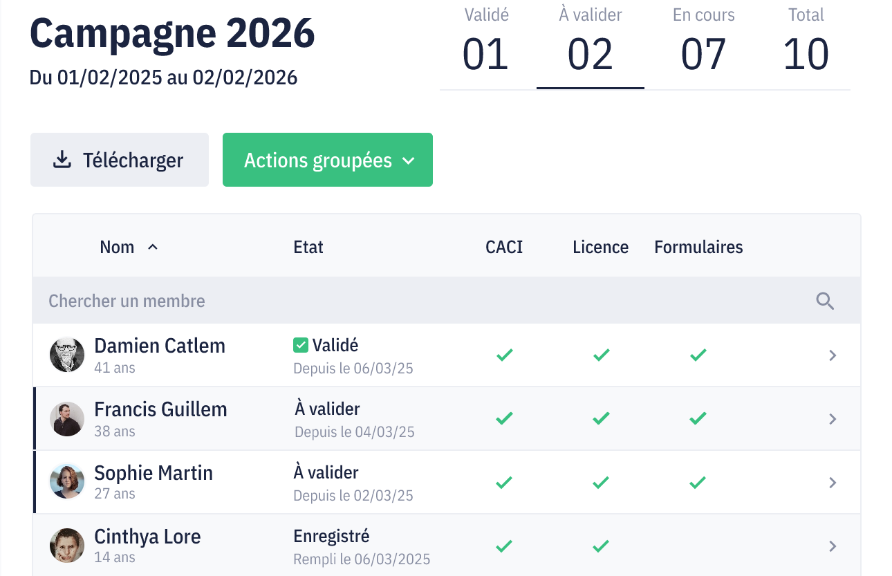 La fonctionnalité “Fichier FFESSM” permet d’importer le fichier licenciés..